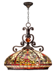 Inspired by French Art Nouveau artist Emile Galle, this pendant, from our Boehme family will add a touch of 19th century French artistry to your home. The shade features 636 pieces of art glass that has been double overlaid and etched in earthy green, yellow, orange, pink and beige tones all set in a classic French fleur de lis pattern with a textured amber border and art glass jewel accents throughout. The wrought iron mount is accented with a large amber art glass orb. The mount, canopy and chain are all finished in antique golden sand.