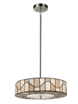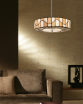 Sunny and bright, our Sandfield series retro style will update any decor in your home. This sleek pendant features a round shade with alternating panels of yellow, amber and white on both the shade’s outside and bottom edges. The panels are outlined in bold filigree, with a wave of filigree running through the panels, which creates movement in the overall design. The circular opening in the bottom of the shade directs light downward for a dramatic effect. The pendant hangs simply from a lustrous canopy and support tube for a truly retro look you will be proud to display in your home for many years to come.