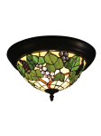 This delightful Tiffany Grape Flush Mount Fixture is reminiscent of picturesque countryside vineyards. The inverted bowl shade features a background of sunny light amber art glass that is set in a grid pattern. Earthy brown vines with lush green foliage are dotted with clusters of “grapes” that are hand blown using deep purple art glass. The ceiling canopy and finial are cast metal and finished in authentic Tiffany Bronze to give this fixture its vintage appeal and pastoral beauty. An ideal choice in an entryway or bedroom, our Tiffany Grape Flush Mount is the perfect fixture in a Tuscan-inspired kitchen. No matter where you choose to hang it, you can rest assured it is crafted to last and will provide your family with many years of artistically reliable lighting.