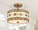 The Minerals Semi Flush Mount is the perfect fixture for the serious Tiffany enthusiast. The shade colors of light amber and beige accented with amber geometric shapes blend perfectly with a rustic bronze metal mesh design fixture. The unique cylinder shape of the shade is accompanied by a sleek metal ceiling canopy. A conversation starter in any décor, our Minerals semi flush mount will provide your family with a lifetime of beauty and reliability. Dale Tiffany uses high quality hand-rolled art glass and the same high quality copper foil and hand leading technique originally developed by Louis Comfort Tiffany more than 100 years ago.