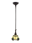 The delicate beauty of our Perla Tiffany Mini Pendant is a pleasant addition to any room in your home. The lovely dome shade features a background of sunny light amber glass panels that are separated by deep filigree. Insets with an abstract fleur d’lis in white, blue, amber and green are placed at intervals around the shade’s bottom. An iridescent blue ribbon at the top is accented with amber art glass gems for an extra touch of color and sparkle. Perla hangs from a finely cast metal ceiling canopy and cable, both finished in Antique Bronze. A pretty metal vase cap with floral accents is finished to match. Hung in multiples over a breakfast nook or kitchen island, our Perla Tiffany Mini Pendant will provide your family with years of beautiful lighting no matter where you choose to display it.