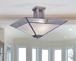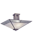 This contemporary fused glass semi flush mount adds a touch of fire and ice to any decor style. The square shade is crafted of large, triangular panels of frosted white glass, which is designed to allow for a bright, yet muted glow when the pendant is illuminated. A wide border of silvery art glass around the shade’s bottom border is textured in a raised cube pattern that will provide an icy glow in contrast. The base and shade’s framework are metal that is finished in brushed nickel. This is the perfect way to light a modern eating area that also makes a dramatic ceiling fixture in any room. Built to last, this fused metal semi flush mount fixture is styled to grow and change with your decor for many years to come.