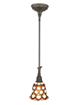 Our Peacock Mini pendant will bring crisp, warm lighting to any decor style. A background of crisp, white art glass features draped bands of light and dark amber and yellow that are laid out to depict peacock feathers, Art glass jewels in amber and white are placed at the top of each feather and a band of dark amber art glass at the shade’s top adds extra warmth and texture. Perfect when hung in multiples over a kitchen island or breakfast bar, our Peacock Mini pendant is an instant family heirloom that will provide your family with many years of reliable lighting that you will be proud to display.