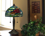 The commanding presence and soothing colors of our Jocelyn Rose Tiffany Table Lamp will be the centerpiece of any room in which it is displayed. The shade with its green and red floral design with opalescent art glass will cast a colorful glow about the room when the lamp is illuminated. The shade sits atop a sleek bronze base that is finished in Antique Bronze/Verde. A perfect whole room light, our Jocelyn Rose Tiffany Table Lamp is also great bedside or next to a favorite reading area.