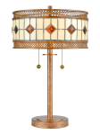 The Minerals Tiffany Table Lamp adds a bold splash of color to any decor. A beautiful hand rolled tiffany and metal mesh cylinder design shade sits atop a metal base finished in our rustic bronze finish. The shade colors of light amber and beige accented with amber geometric shapes blend perfectly with a metal mesh design base. This sophisticated tiffany table lamp is great in a living room, entryway, den or bedroom. Dale Tiffany uses high quality hand-rolled art glass and the same high quality copper foil and hand leading technique originally developed by Louis Comfort Tiffany more than 100 years ago.