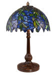 Louis Comfort Tiffany was well known for his love of nature. Our designers have beautifully recreated that love in this Roma Wisteria Tiffany table lamp. A multitude of individual glass pieces, each hand rolled and copper foiled come together in a free form depiction of a graceful willow tree. Blossoms in shades of bright blue and yellow are nestled amidst lush green leaves and brown branches flow downward to the shade’s free form edge. A finely cast metal base completes the realistic feel of the lamp. A perfect piece for end tables and nightstands, our Roma wisteria table lamp is a must have piece for any Tiffany enthusiast that will provide you with a lifetime of beautiful, reliable service.