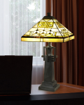 Our Akron Tower Tiffany Mission Table Lamp features a turn of the century arts and crafts style that will easily assimilate into any décor. The fixture features a square mission shade with a light amber background. Each side is adorned with a mission style geometric design in complementary colors. A wide band of deep amber near the shade’s bottom provides an extra pop of warm color. The tower style base is finished in Antique Bronze and features architectural elements that complement the mission style. Great for dens, offices and bedrooms, our Akron Tower Tiffany Mission Table Lamp is crafted to last to provide you with years of stylish lighting.