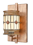 The Minerals Tiffany Wall Sconce will fashionably complement any decor in your home or office. The shade colors of light amber and beige accented with amber geometric shapes blend perfectly with a rustic bronze metal mesh design fixture. Timeless hand rolled art glass and metal come together to make a one of a kind warm cozy glow when illuminated. Built to last, this functional light fixture is illuminated artwork and will be a favorite in your home for years to come. Dale Tiffany uses high quality hand-rolled art glass and the same high quality copper foil and hand leading technique originally developed by Louis Comfort Tiffany more than 100 years ago.